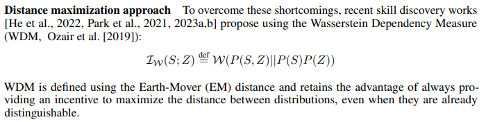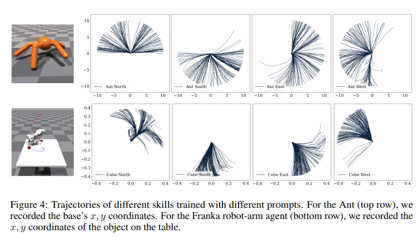(그런데 이렇게 하는게 사실 supervised에 가깝다고 생각. implicit하게 줬을 뿐이지 프롬프트로 d1과 d2를 얻는 상태를 '명시적'으로 구분해줬기 때문에, 팔을 가져다가 놓으라고 알려주는 것과 다를 바가 없을것 같다. 본 논문이 추구하는 autonomously learn useful skills applicable to downstream tasks without task-specific objectives와는 거리가 있어 보인다.)