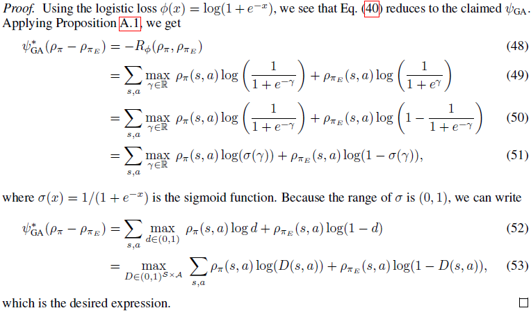 이로써 MaxEntIRL의 최적화 문제가 GAIL의 수식(1)과 동일하다는 것을 증명했습니다.