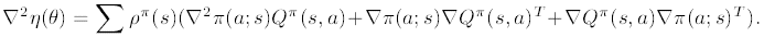 불행히도 Hessian의 모든 항들은 데이터 의존적입니다.(Q함수의 존재 때문입니다.) 그렇기에 $\nabla Q^{\pi}$ 에 의존하는 나머지 두항에서 피셔 정보 행렬은 아무런 정보도 얻지 못합니다. 그리고 첫 번째 행렬은 $\nabla ^{2}\pi$ 때문에 피셔 정보 행렬과 관련이 있어 보입니다. 그러나 Q value가 미치는 영향을 피셔 정보 행렬은 무시합니다.