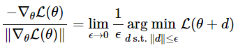 위 식을 설명하자면, 국소적으로 파라미터 공간에서 가장 가파른 경사도 방형은 벡터 d를 선택하는 것임을 의미합니다. 이 벡터 d는 국소공간에서 loss function을 가장 작게 만드는 벡터입니다. 근데 이 국소공간($\epsilon$-neighborhood)의 크기는 유클리드 노름(Euclidean Nrom)으로 정의되었습니다. 즉, 일반적인 gradient descent는 파라미터 공간의 유클리디안 기하학을 이용하는 방법입니다.