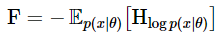 $\mathbb{E}_{p(x|\theta)}[\nabla log\ p(x|\theta)\ \nabla log\ p(x|\theta)^{T}]$