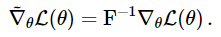 아울러 이제부터 $F(\theta)^{-1}\nabla \eta(\theta)$를 간단히 $\widetilde{\nabla}\eta(\theta)$로 줄여 표기하겠습니다.
