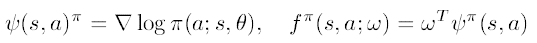그리고 함수 $f^{\pi}(s,a;\omega)$는 다음과 같습니다.