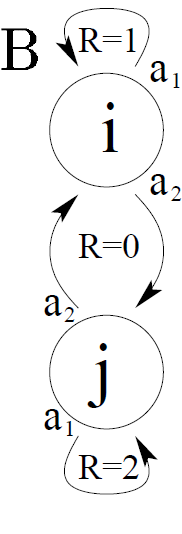 위 그림에서 i 노드에서 self-loop를 선택할 행동의 확률을 계속 증가시킨다면 j 노드에서 머물 시간이 줄어들것입니다. 다시 말하면, 이러한 행위는 j에서의 stationary probability를 줄게 할것입니다. 정책 근사로 시그모이드형의 함수를 사용하고 초기 상태를 $\rho(i)=.8\ \ and\ \ \rho(j)=.2$라고 하겠습니다. 이제 gradient를 통한 학습을 진행하면 각 노드에서는 self-loop를 선택할 확률이 초기에는 늘어날 것입니다. (왜냐하면 one-step 정책 향상은 각 노드에서 self-loop를 선택할 것이기 때문입니다.)