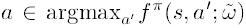$\pi_{\infty}(a,s) \neq 0 \ \ \ iff\ \ \ a\in argmax_{a^{'}}f^{\pi}(s,a^{'};\widetilde{\omega}) 이다.$