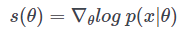 자, 이제 다음과 같은 문제를 생각해 봅시다. 우리는 지금 θ로 매개화된 모델이 있습니다. 즉, 이 모델은 $p(x|\theta)$의 분포를 가지고 있다고 말할 수 있습니다. 빈도주의자 관점에서 $x$의 확률을 높이기 위해 $p(x|\theta)$를 최대화시키는 $\theta$를 찾는 것을 목표로 합니다. 다시 말해 likelihood $p(x|\theta)$를 최대화하고 싶습니다. 이에 우리는 $\theta$를 찾기 위해 학습을 진행하려고 합니다. 또한 $\theta$에 대한 추정이 잘 진행되고 있는지 평가하기 위해 다음과 같은 score 함수를 설정할 수 있습니다.