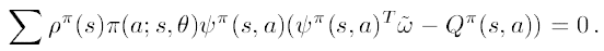 $Theorem 2.$ 정책이 지수족으로 표현되고 ( $\pi(a;s,\theta) \propto exp(\theta^{T}\phi_{sa})$ ), 또 $\widetilde{\nabla}\eta(\theta)$가 0이 아니고, $\widetilde{\omega}$가 근사 에러를 가장 작게 만든다고 가정해보자.
