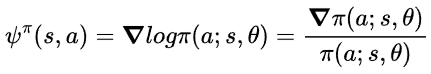 여기서, $\nabla \pi(a;s,\theta)=\pi(a;s,\theta)\psi^{\pi}(s,a)$이기 때문에, 위 식에서 우변은 다음과 같습니다.